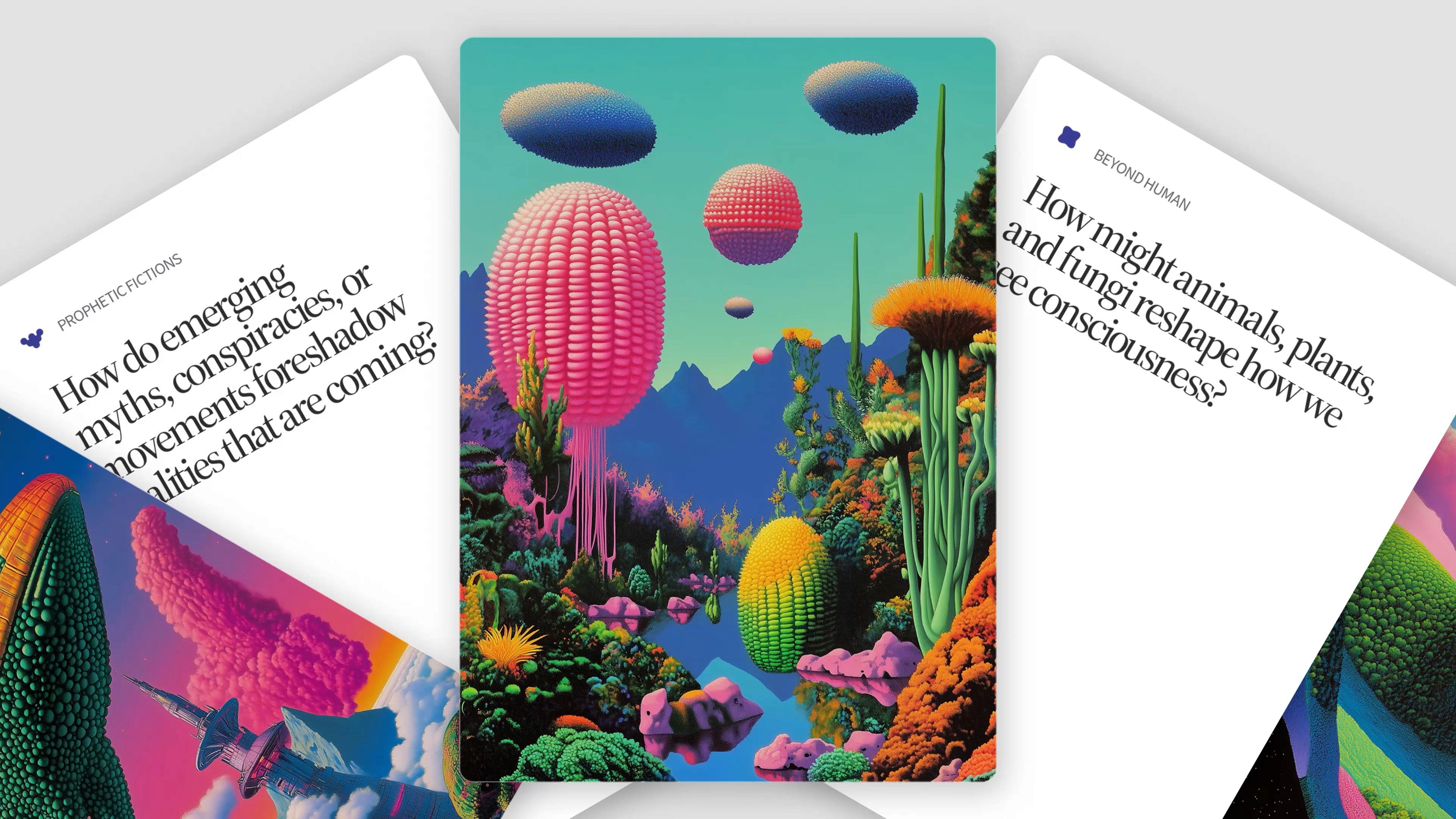 We scanned multiple domains around key themes, developed clustered provocations, mapped consequences, and unveiled potential future events, synthesising them into a set of possible futures, compiled as the Futures Pack to guide exploration.